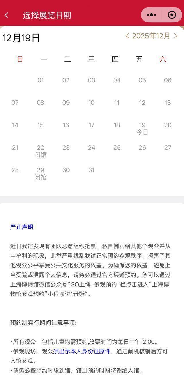目前,直至12月底的预约参观已满